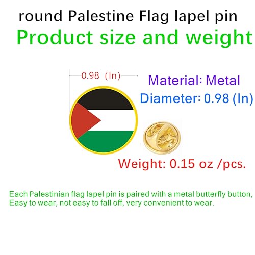 HAFILO - 12/25/50/100 قطعة من دبابيس طية صدر العلم الفلسطيني دائرية صغيرة بتصميم علم فلسطين