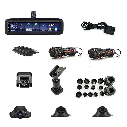 SZKJ - كاميرا تابلوه السيارة مقاس 30 سم بنظام أندرويد 8.1 2+32G، كاميرا تابلوه بدوران 360 درجة بـ4 قنوات وبث مباشر 4G، رؤية عن بعد عبر تطبيق مساعد السيارة، نظام تحديد المواقع GPS، كاميرا داش اداس DVR