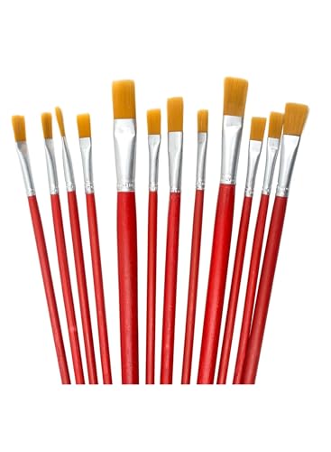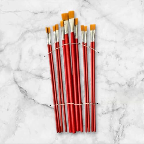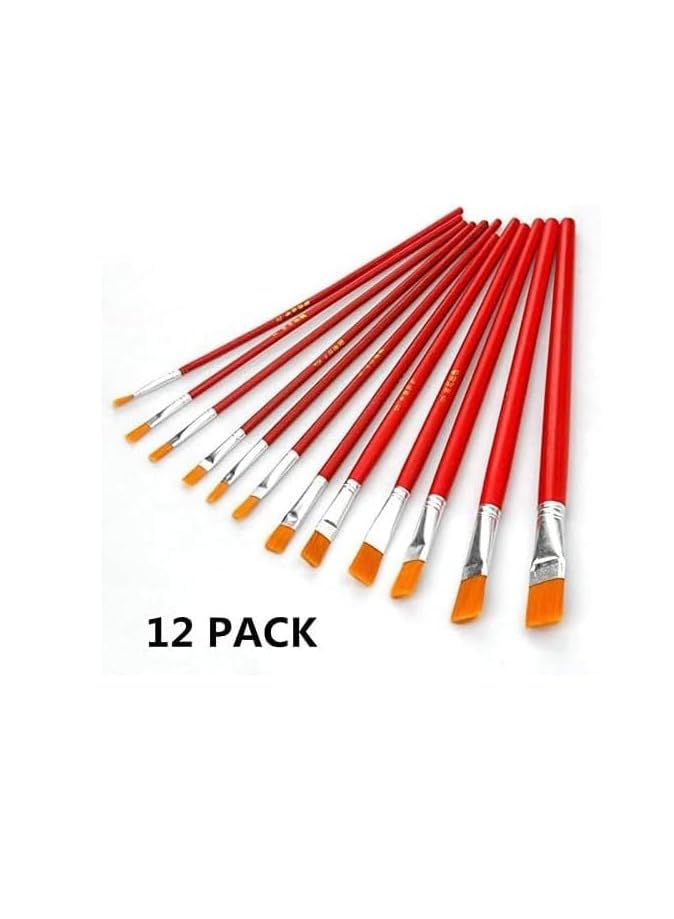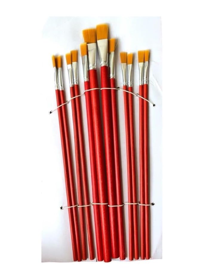 Generic - مجموعة فرش رسم بمقابض خشبية بلون أحمر، 12 قطعة