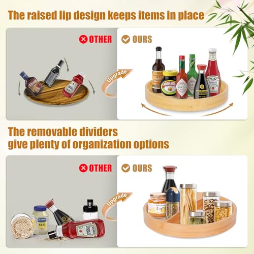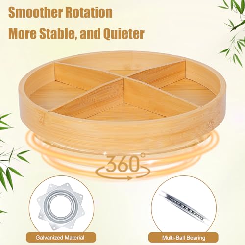WstNine - منظم دوّار من خشب البامبو 30 سم مع فواصل قابلة للإزالة، مادة طبيعية، قاعدة غير قابلة للانزلاق، صينية دوارة 360° للمطبخ وغرفة الطعام والطاولة وغرفة المعيشة