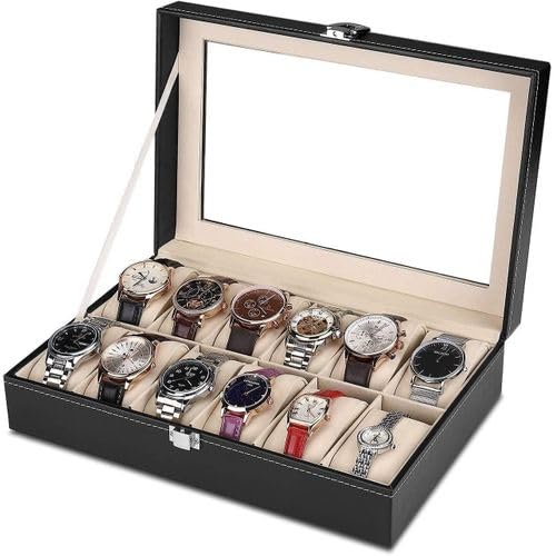Generic - صندوق تخزين 12 خانة للساعات والإكسسوارات تصميم أنيق بغطاء شفاف وخامة جلد راقية منظم عملي يحافظ على أغراضك T