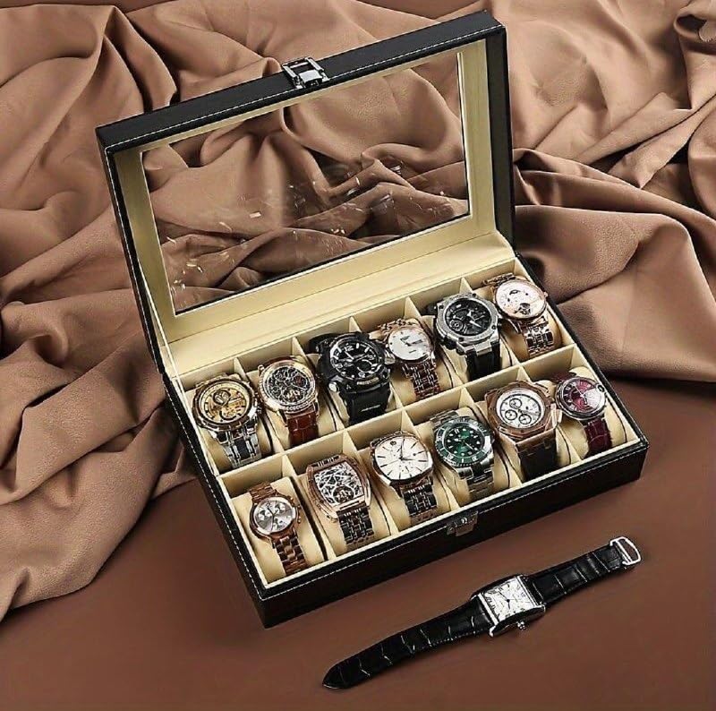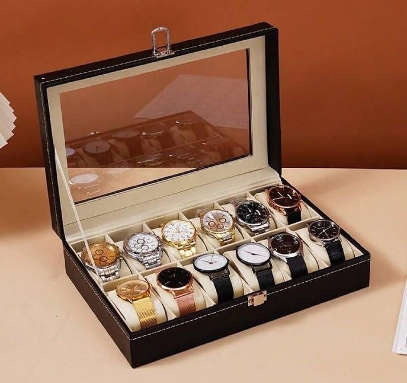 - 12 خانة مستقلة للتنظيم: حافظ على ساعاتك أو إكسسواراتك بشكل منظم وآمن، بعيدًا عن التداخل أو الخدوش.