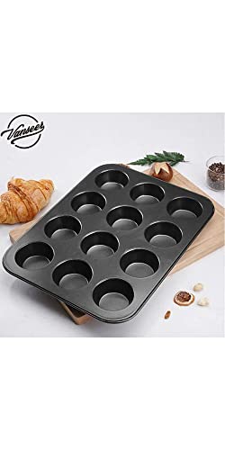 generic - 12 قالب كب كيك باللون الاسود - مثالي للكب كيك والحلوى الاخرى - متين وعالي الجودة - تصميم عصري وجذاب - يوفر نتائج مثالية ومتسقة في كل مرة 104141، سبيكة صلب، أبيض