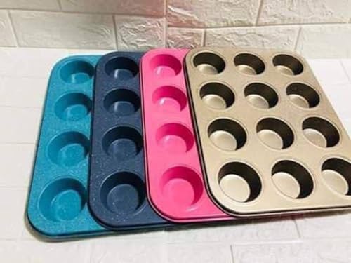 Generic - صينية كب كيك 12 عين بطبقة جرانيت متعدد الألوان