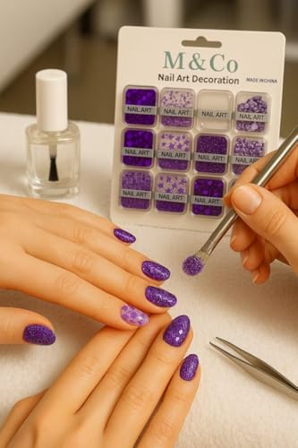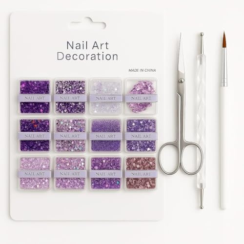 - مجموعة متنوعة من الملحقات - تتضمن 12 شبكة مملوءة برقائق الرقائق المعدنية والترتر وإكسسوارات تزيين الأظافر المختلطة، مما يوفر خيارات إبداعية لا حصر لها لتصميمات أظافرك.