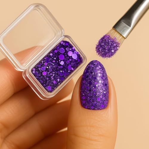SNS SECRET NAILS SYSTEM - مجموعة تزيين الأظافر مكونة من 12 شبكة تتضمن مزيج من الرقائق والترتر والرقائق المعدنية للأكريليك والجل والأظافر التي تثبت بالضغط والأظافر الطبيعية، زينة طلاء أظافر للتركيب بنفسك (لافندر ميست، مقاس واحد