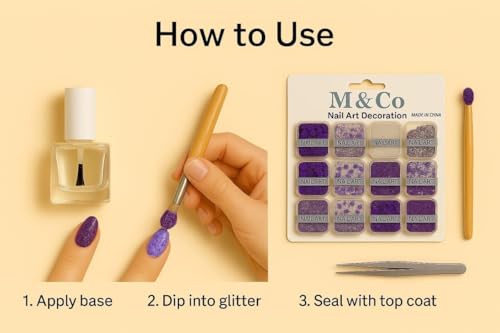 - استخدام متعدد الأسطح - يعمل بشكل مثالي على أظافر الأكريليك وطلاء الجل والأظافر التي تعمل بالضغط والأظافر الطبيعية، مما يضيف بريقًا وأبعادًا إلى أي مانيكير.