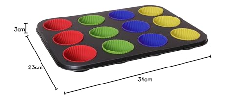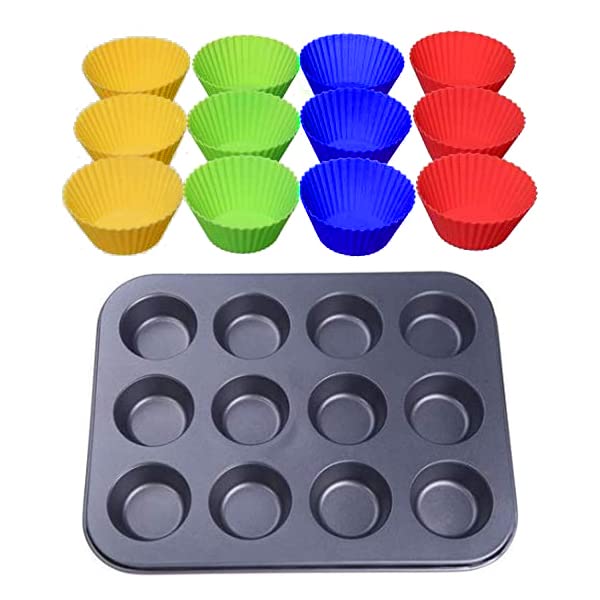 Generic - قالب خبز سيليكون بـ12 فتحة للمافن والكب كيك - متعدد الالوان