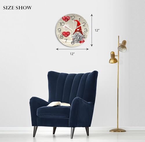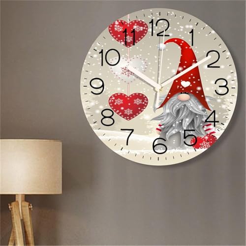 Generic - ساعات حائط دائرية مقاس 12 انش، اقزام مع قبعة عيد الميلاد الحمراء، ساعات حائط مزخرفة تعمل بالبطارية بدون تكتكة، ساعة حائط صامتة للمدرسة ورياض الاطفال وغرفة المعيشة