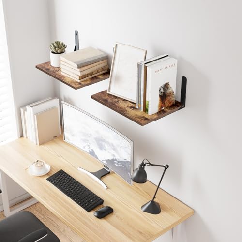 yaqew - ارفف عائمة خشبية مثبتة على الحائط بعمق 12 انش من ياكيو مجموعة قطعتين كتب معلقة عريضة وكبيرة للمكتب وغرفة النوم المعيشة والحمام والمطبخ الغسيل بني ريفي