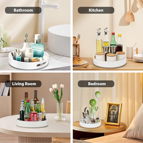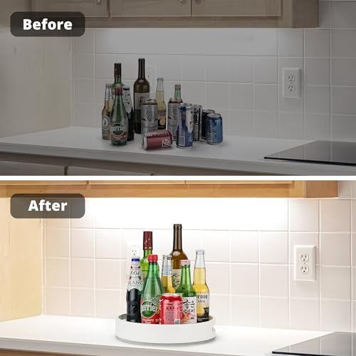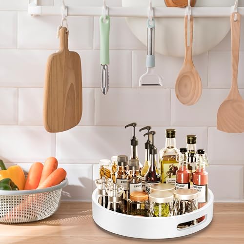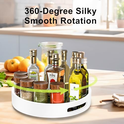 ZhiYo-Life - منظم ليزي سوزان دوار 12 انش للخزانة: منظم توابل من الخيزران، منظمات المطبخ والتخزين، منظم توابل للخزانة، طاولة الطعام، الحمام، خزانة المؤن، ابيض