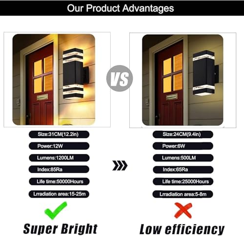 - مصباح حائط خارجي - مصباح الشرفة الذي يوفر إضاءة من أعلى وأسفل لا يجعل مشروع إضاءة الحائط الخارجي خفيف الوزن فحسب، بل يجعل منزلك مميزًا أيضًا، وهو مثالي للباب الأمامي والشرفة والحديقة والجراج والفناء.