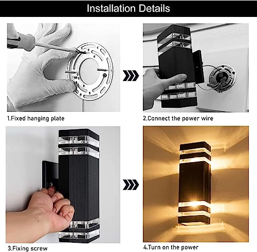 - 【مصباح حائط مقاوم للصدأ ومقاوم للماء】مصباح الحائط مصنوع من ألومنيوم مقولب بالصب قوي ومتين، مما يمنع بشكل فعال تعرض مصباح ديكور الحائط للصدأ أو التآكل. تصميم مصباح خارجي مقاوم للماء بدرجة IP65 من الغسق حتى الفجر لظروف الطقس السيئة.