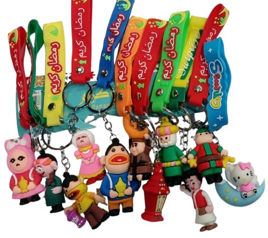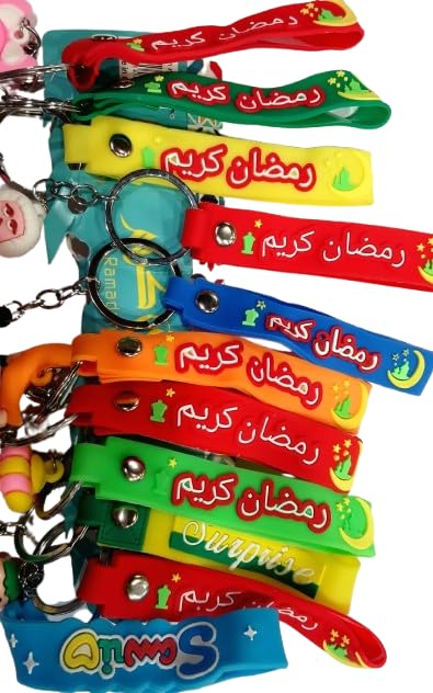Generic - عدد 12 ميدالية مفاتيح /أشكال رمضانية/مع حزام كبير للرسغ مكتوب عليه / أشكال تدخل الفرح و السرور/ أشكال و ألوان و عبارات متوعة/ رمضان كريم/مجسمات فنانيس/و غيره