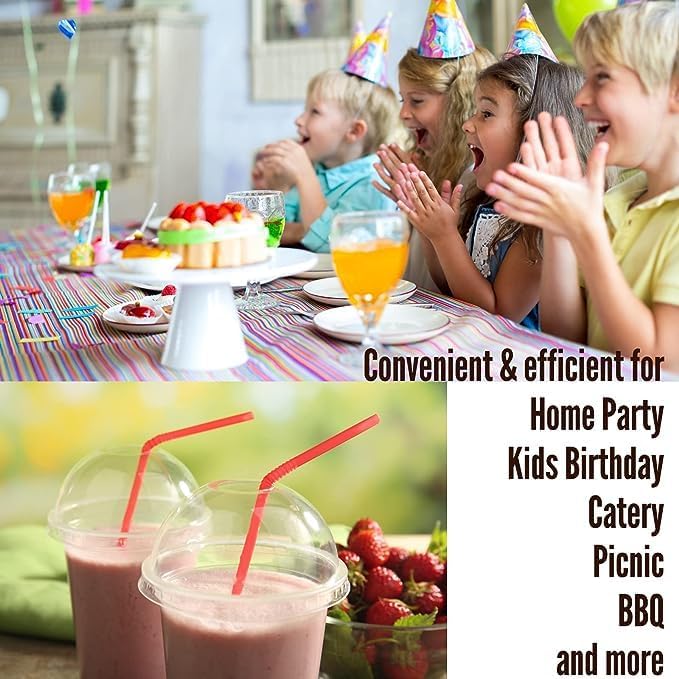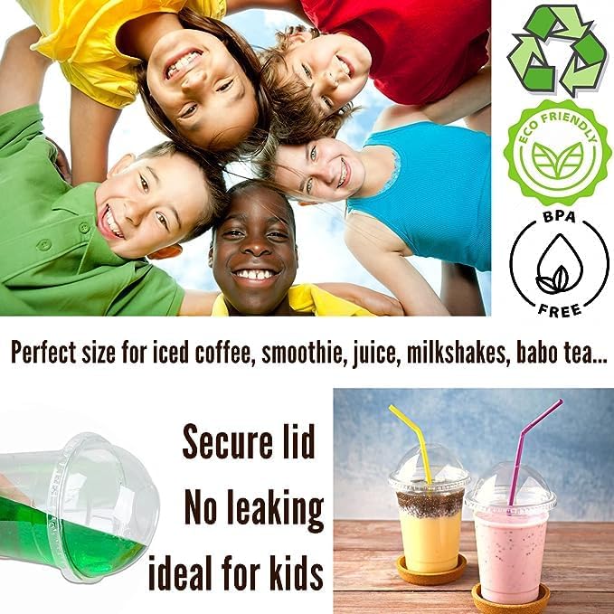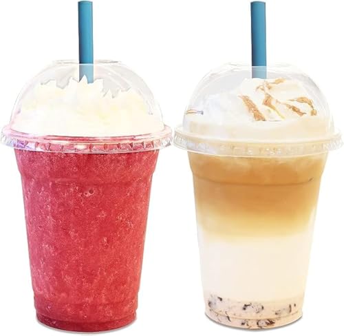 LC - أكواب بلاستيكية شفافة بأغطية بشكل قبة للاستخدام مرة واحدة سعة 341 مل للمشروبات الباردة - الشاي المثلج - السموذي - الصودا حفلات مضادة للتسرب 50 قطعة متعدد الألوان