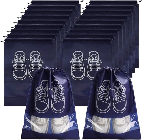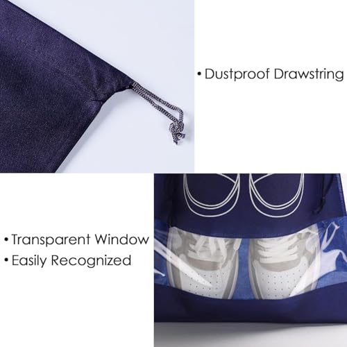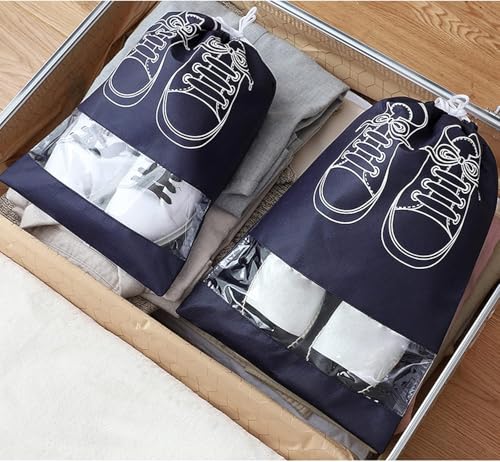 Generic - مجموعة من 12 حقيبة تخزين أحذية كبيرة مع نافذة شفافة – منظم مقاوم للغبار والرطوبة قابل للغسل وإعادة الاستخدام، قماش غير منسوج مهوّى برباط سحب آمن مثالي للسفر والمنزل والخزائن والتخزين تحت السرير