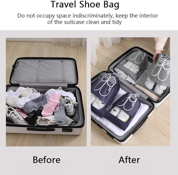 - سهولة الاستخدام بفضل رباط السحب الآمن: يتميز التصميم برباط سحب قوي يسهل فتح وإغلاق الحقيبة بإحكام للحفاظ على نظافة الأحذية أثناء السفر أو التخزين. كما يمكن تعليقها بسهولة لتوفير المساحة داخل الخزانة أو الحقائب.