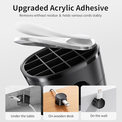 - ⚫【لاصق اكريليك لا يترك بقايا】تسمح لك حشوات لاصق الاكريليك المطورة بتثبيت منظم الكابلات بسهولة على أي سطح أملس وجاف مثل المكتب الخشبي والزجاج وبلاط السيراميك وغيره. الحشوات اللاصقة الشفافة صديقة للبيئة ولن تتلف مكتبك أو طاولتك الجانبية للسرير أو الجدران.