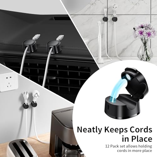 FlyCoco - مشبك مغناطيسي لتنظيم الكابلات، منظم أسلاك وكابلات شاحن الموبايل قابل للتعديل بسلاسة، حامل أسلاك لاصق للتثبيت على الطاولة الجانبية للسرير أو الحائط أو السيارة أو المكتب من فلاي كوكو، 12 قطعة