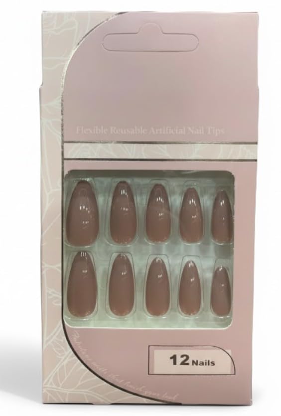 Generic - 12 قطعة اظافر صناعية بالضغط متوسطة الحجم مصنوعة من الاكريليك بلون بيج نود مع طبقة واحدة مزدوجة الوجه - 07