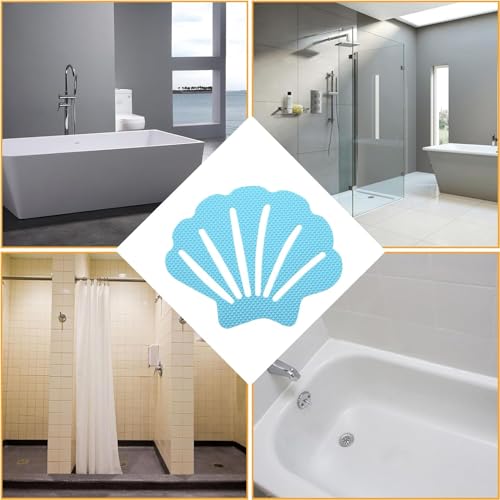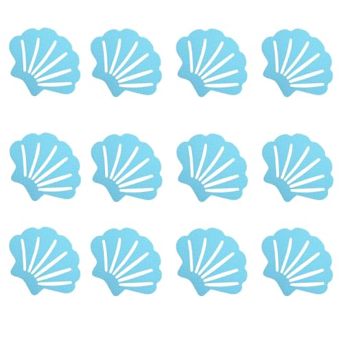 fashion mania - ملصقات حوض الاستحمام غير قابلة للانزلاق على شكل صدفة لاستحمام آمن مجموعة من 12 قطعة، لون أزرق