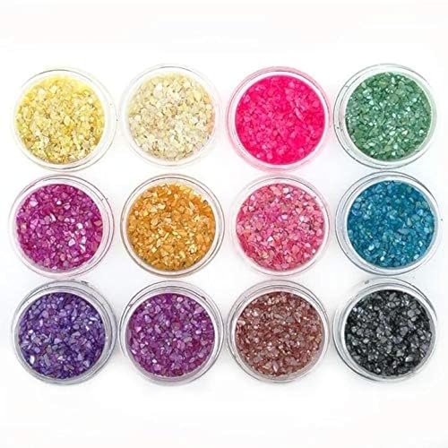 generic - مجموعة رقائق جليتر صدفية مطحونة لتزيين الأظافر بألوان متعددة، 12 قطعة - موديل Tipssouq58843