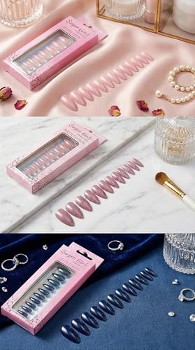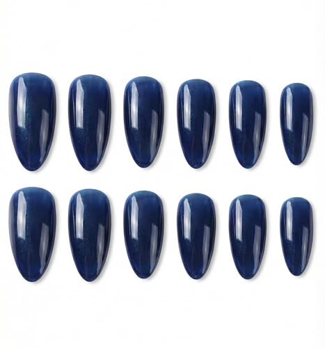 Nopatia - طقم أظافر صناعية 12 قطعة - تصميم لوزي كلاسيكي بلمعة زجاجية قوية - أظافر تركيب سريع بمظهر طبيعي وأنيق للمناسبات والاستخدام اليومي (ازرق)