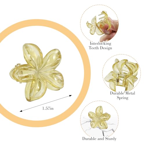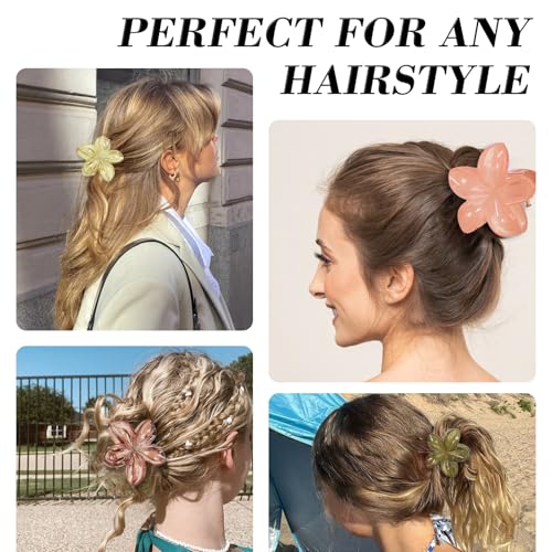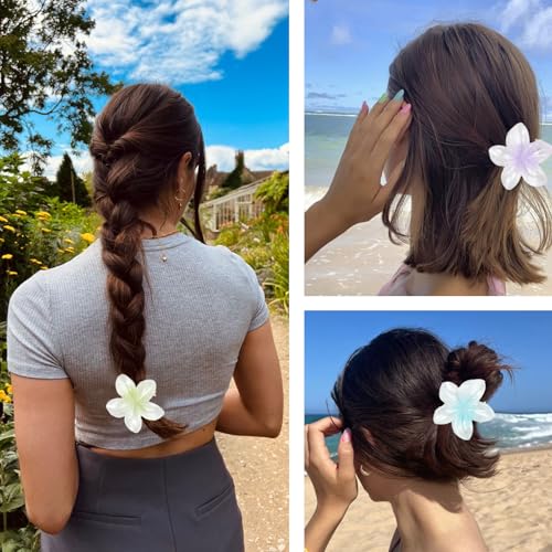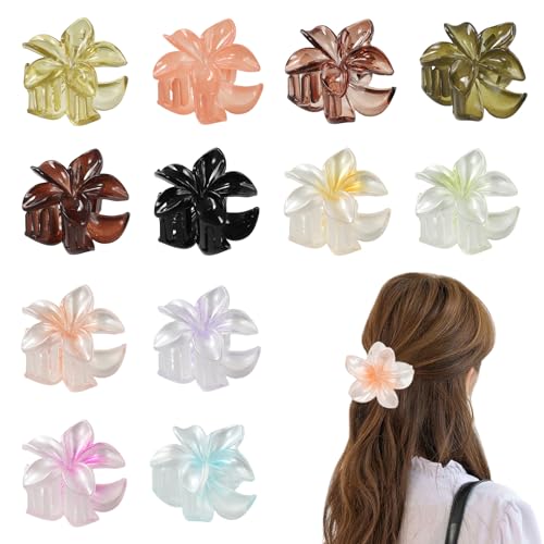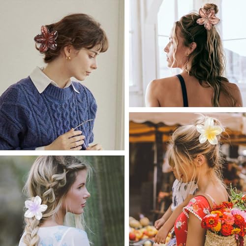 PKRFCJ - مشبك شعر مخلبي على شكل زهرة بنمط هاواي، مشبك شعر لطيف شكل زهرة هاواي، تثبيت قوي، اكسسوارات شعر مضادة للانزلاق، مناسبة للبنات ذوات الشعر الكثيف والرقيق (حجم 4 سم، ألوان متعددة) عبوة من 12 قطعة