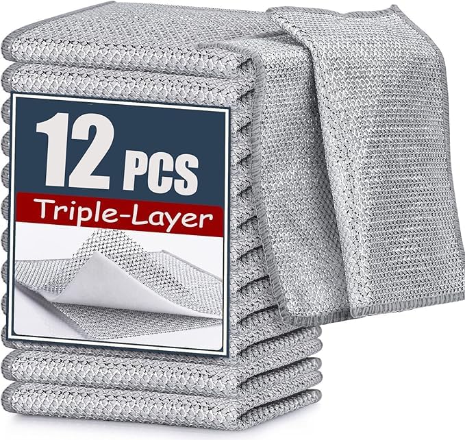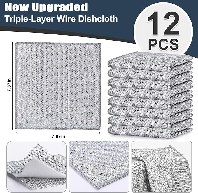 Generic - 12 قطعة قماش تنظيف اسلاك ستيل مطورة جديدة ثلاثية الطبقات قوي غير قابل للخدش لاواني الطبخ والاحواض والاطباق وأسطح الموقد متعدد الألوان