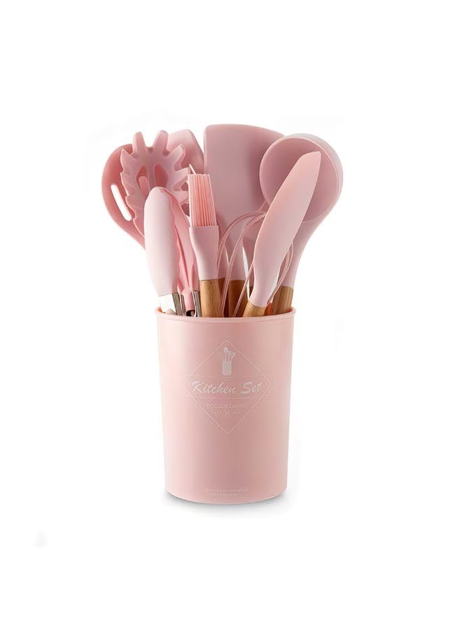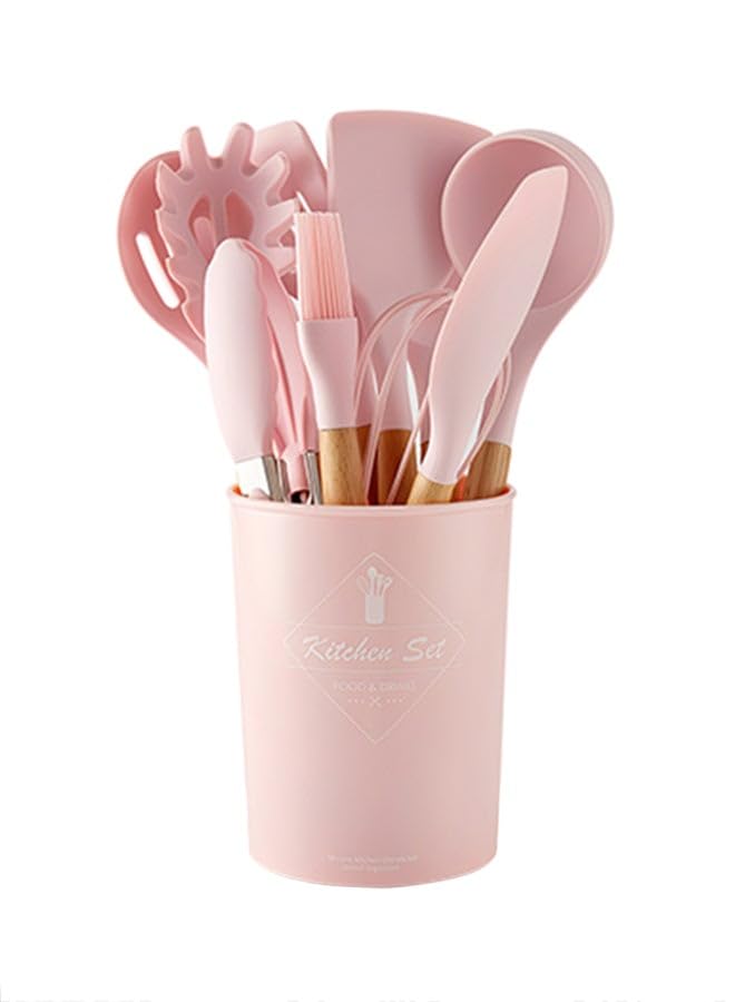 generic - طقم ادوات طبخ اسطوانية بمقبض خشبي، 12 قطعة، متعددة الالوان