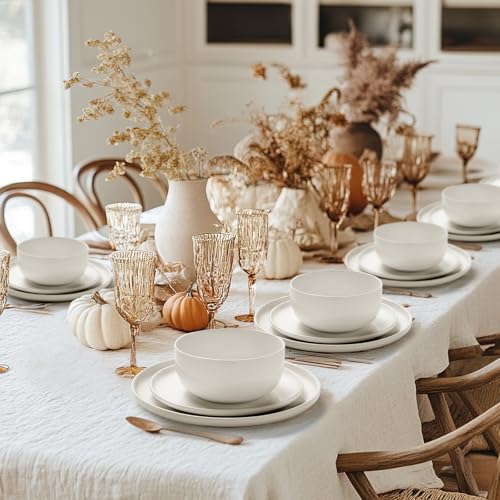 - تصميم أنيق لكل مناسبة - طقم عشاء مكون من 12 قطعة من البورسلين الأبيض يكفي 4 أشخاص، بما في ذلك أطباق العشاء مقاس 26.67 سم، وأطباق السلطة مقاس 21.59 سم، وبولات للشوربة مقاس 15.24 سم (855.9 جم). تتماشى اللمسة النهائية البيضاء النقية الناعمة تماشيًا مثاليًا مع ديكور الطاولة، بدءًا من وجبات الإفطار المتأخرة إلى وجبات العشاء الرسمية