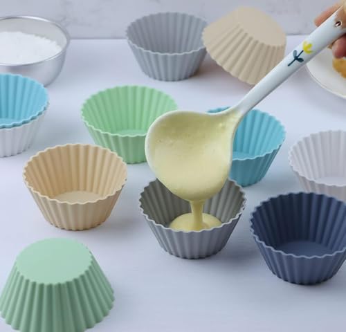 Generic - 12 قطعة من أكواب خبز المافن والكب كيك المصنوعة من السيليكون المقاوم للحرارة، صينية فرن مرنة غير لاصقة لسهولة تحضير الحلويات المنزلية ولمتعة الخبز