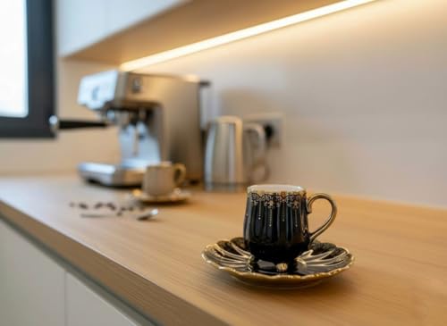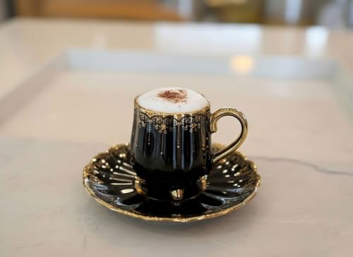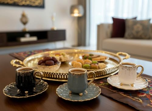 - 【لمسة نهائية ذهبية متطورة】عزز كل لحظة قهوة بلمسة نهائية ذهبية كاملة على كل كوب وصحن، مما يضيف لمسة من الرقي والأناقة إلى طاولتك التي تثير إعجاب الضيوف دون عناء، وترفع من عرض القهوة العربية أو التركية أو الإسبريسو، وتحول روتين القهوة اليومية إلى تجارب راقية ومذهلة بصريًا تمزج العملية مع الجاذبية الجمالية الفاخرة والخالدة.