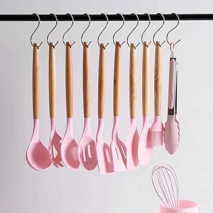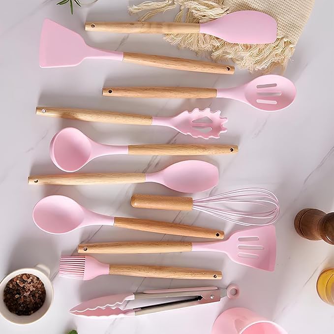 - مواد فاخرة: رؤوس سيليكون عالية الجودة مقترنة بمقابض خشبية أنيقة توفر المتانة ومقاومة للحرارة لمهام الطهي اليومية