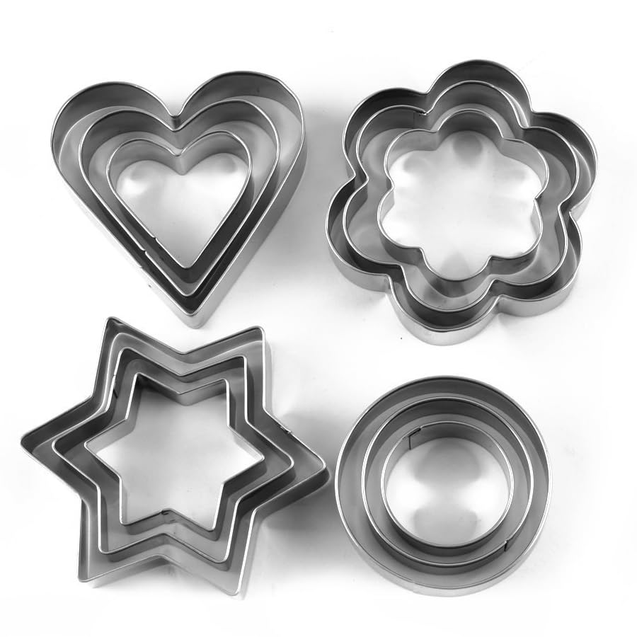 Kt Home - مجموعة ادوات تقطيع البسكويت من الستانلس ستيل مكونة من 12 قطعة على شكل قلب ونجمة وسحابة ودائرية، 3 مقاسات 301، قطاعة عجين معدنية متينة وصحية