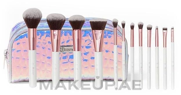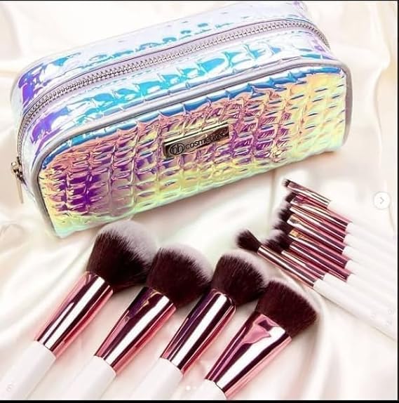 • محتويات المجموعة: تتضمن 12 قطعة من فرش المكياج الاحترافية مع حقيبة مستحضرات تجميل هولوغرافية أنيقة للتخزين والحمل