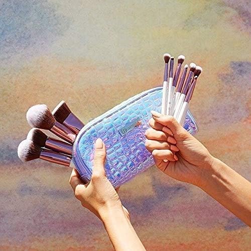 • حقيبة هولوغرافية: تأتي مع حقيبة مستحضرات تجميل بتصميم قزحي لامع مع سحاب لحفظ الفرش بشكل منظم وآمن
