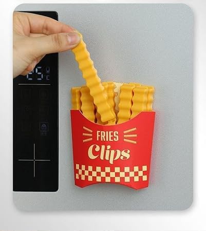 - ✅ (سهل الاستخدام) تصميم أنيق ومرح يساعدك على الحفاظ على الأطعمة طازجة لفترة أطول بدون تسرب أو انسكاب., مع غالق الأكياس على شكل باكت بطاطس الذي يأتي مع 12 مشبك وحامل وشريحة مغناطيسية مرنة.