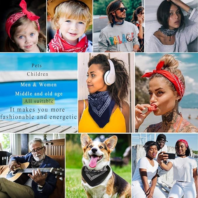 Generic - مجموعة باندانات للجنسين من 12قطعة، وشاح ناعم للرأس والرقبة، غطاء وجه، لفافة معصم، منديل للاستخدام اليومي