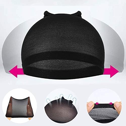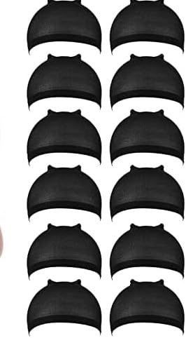 Generic - 12 قطعة من بونيهات الشعر المستعار من النايلون للحصول على شعر مستعار مرن، مع دانتيل امامي، لون اسود