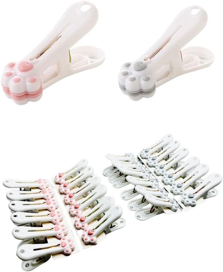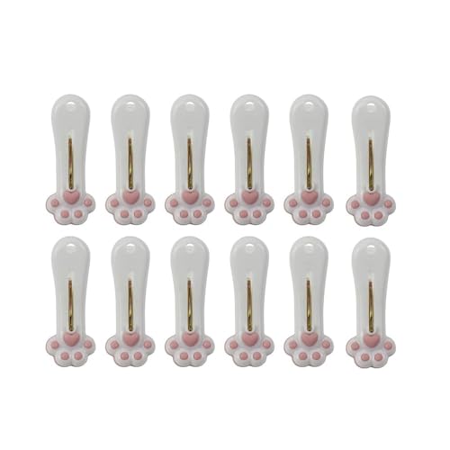 fashion mania - مشابك غسيل بلاستيكية لا تترك أثر، مشابك تعليق الملابس للغسيل وأكياس الطعام، عبوة من 12 قطعة (نمط مخلب قطة)