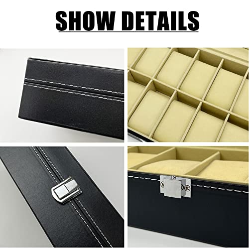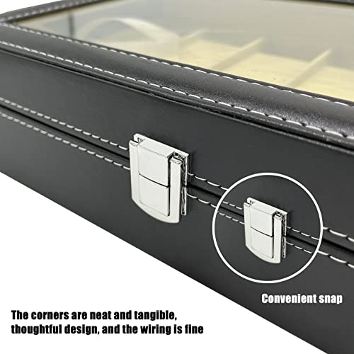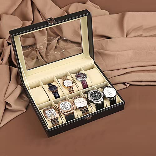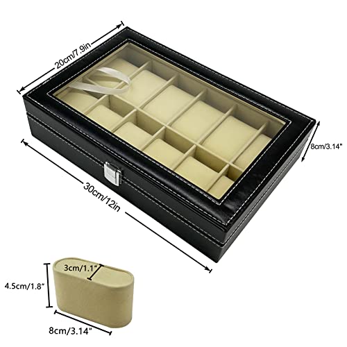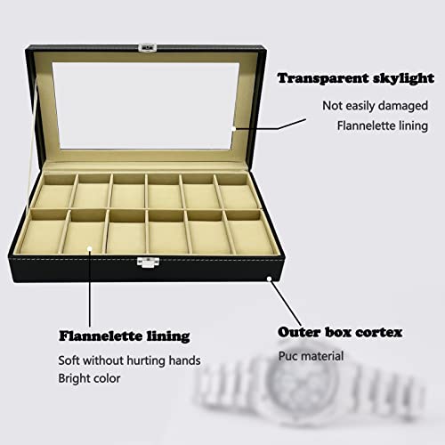 Wensdr - علبة عرض وتخزين الساعات والمجوهرات – 12 فتحة – مصنوعة من الجلد، مزودة بوسائد ناعمة ونافذة شفافة لعرض الساعات
