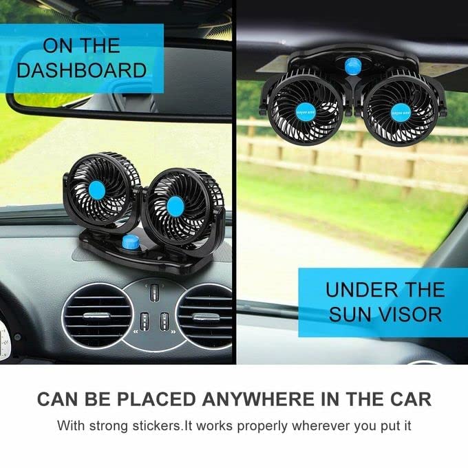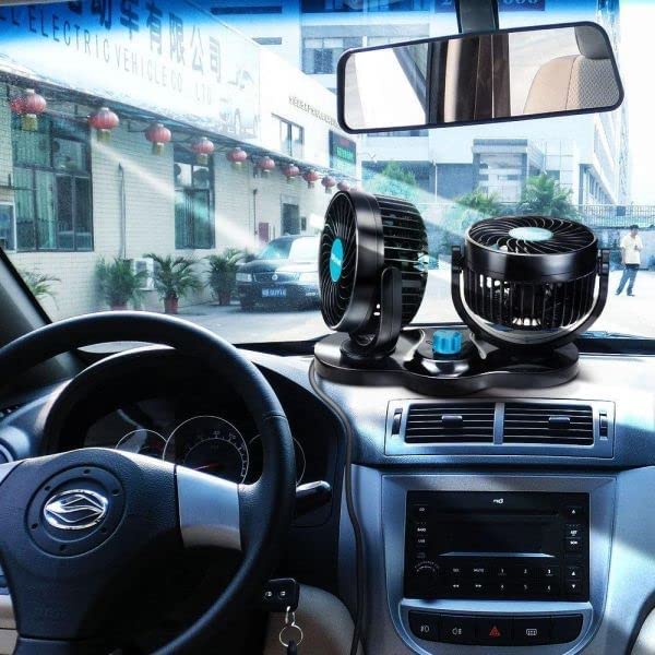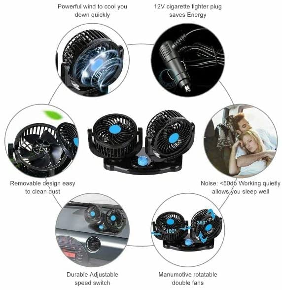 Generic - مروحة تبريد سيارة كهربائية مع قابس ولاعة سجائر قابل للدوران 360 درجة - 12 فولت، عدد المنافذ: 10، أسود، 100 واط