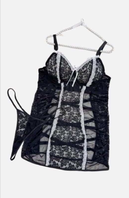 هنادي - قميص نوم قصير بخامة تل ودانتيل – بيج سايز يصل حتى 120 كيلو HN 9055