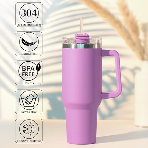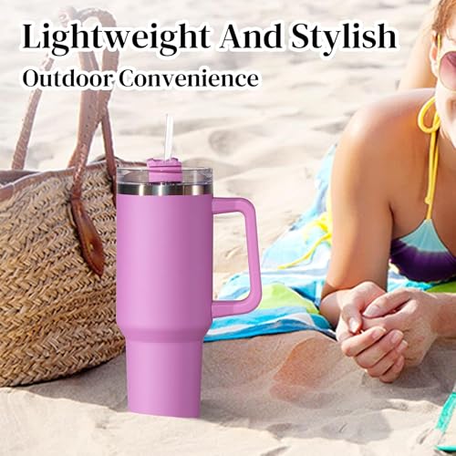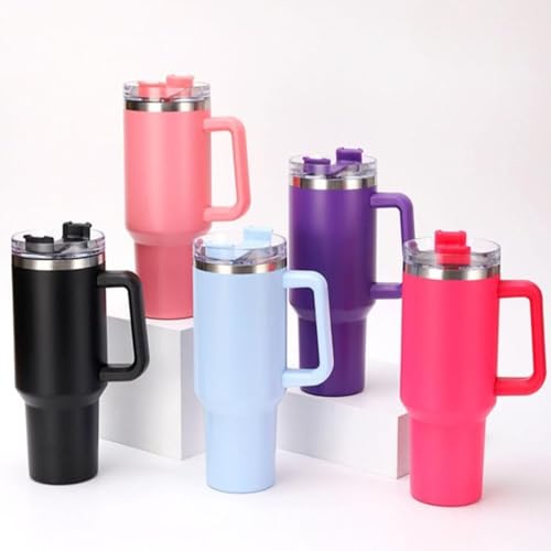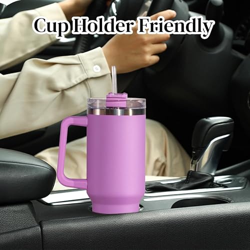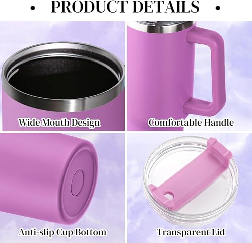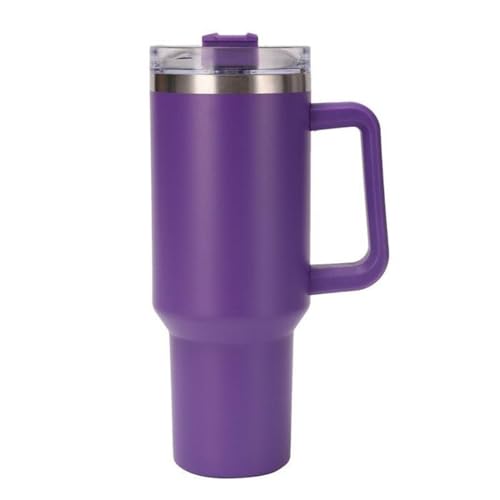 Generic - مج حراري بمقبض وشفاطة، كوب قهوة محمول معزول بتفريغ الهواء مزدوج الجدار ومصنوع من الفولاذ المقاوم للصدأ بغطاء، كوب سيارة محمول للمشروبات الساخنة والباردة (أرجواني)- 1200 مل