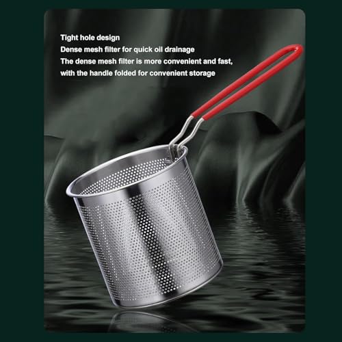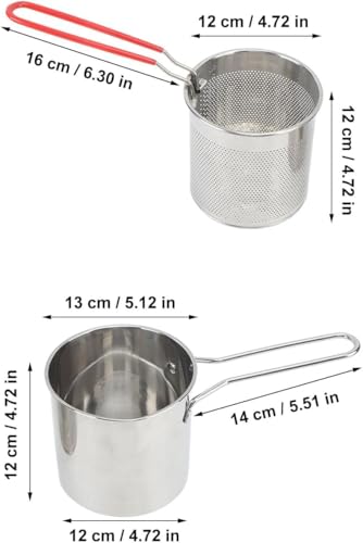 Generic - مقلاة قلي زيت عميقة من الستانلس ستيل بسعة 1200 مل مع سلة تصفية ومقبض طويل للطهي والقلي في المنزل أو التخييم | طاسة قلي صغيرة للبطاطس المقلية والدجاج والمأكولات السريعة