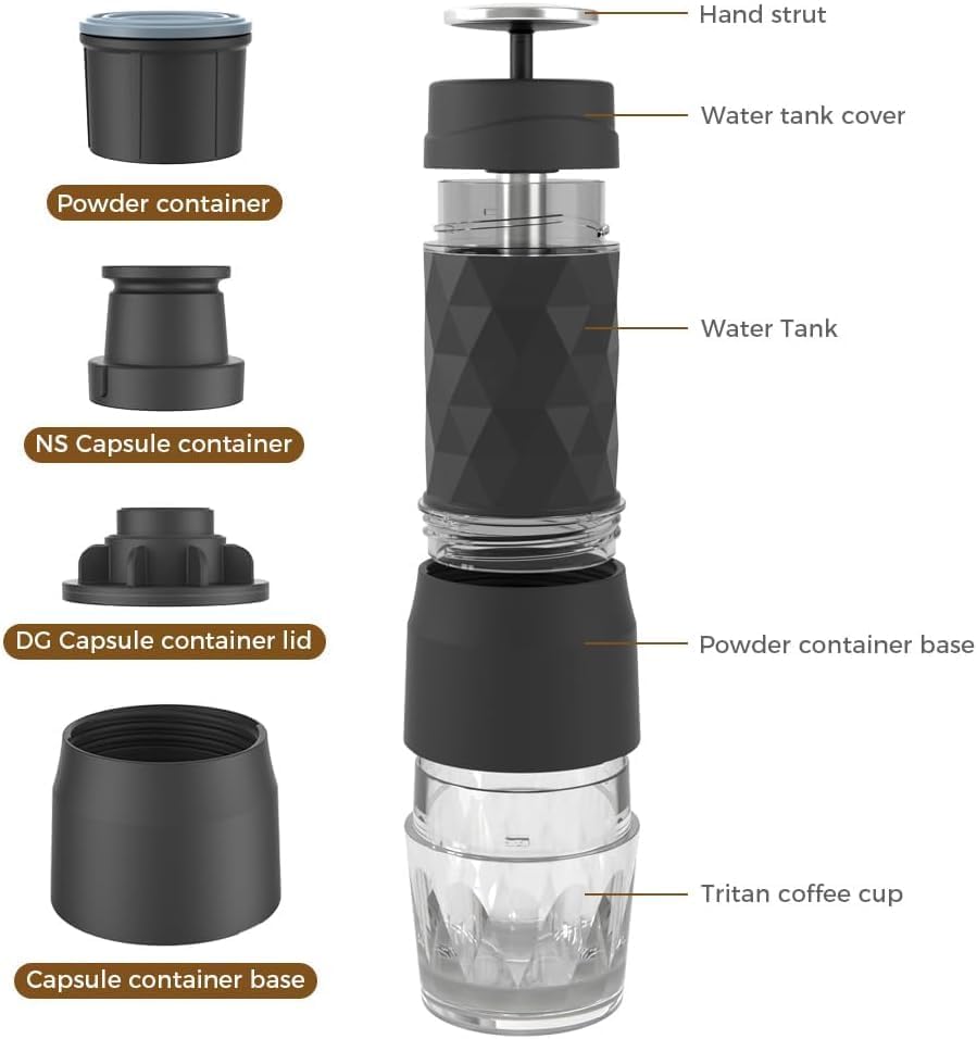 - خفيفة الوزن وسهلة الحمل : ماكينة صنع القهوة الاحترافية مناسبة للسفر والتنزه والنزهة ، مريحة للحمل .