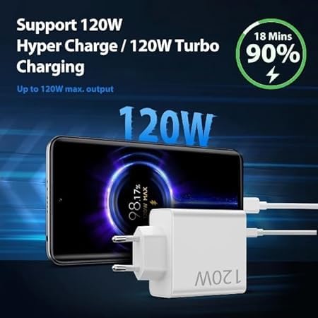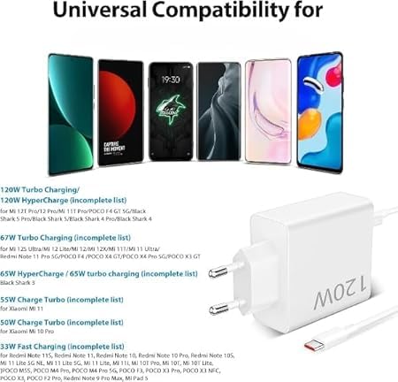 Generic - شاحن سريع بقدرة 120 وات مع كابل USB نوع C بطول 1 متر لشاحن ريدمي نوت 13 12 11 برو، شاحن تيربو لشاومي 13T برو/13/12T برو/12X/11T برو/11/ريدمي نوت 11s/نوت 10 برو/بوكو X6/M6/X5/X3 برو/مي باد 6/5