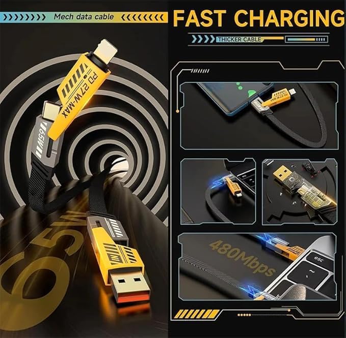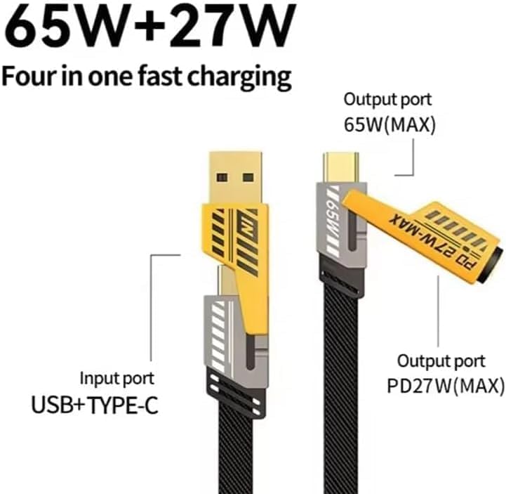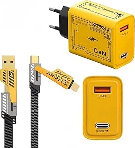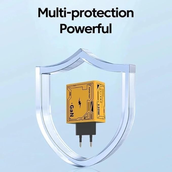 Generic - محول طاقة بتقنية الشحن السريع 120 وات، كابل نوع سي بطول 2 م، شحن تيربو 2 في 1، لون أصفر