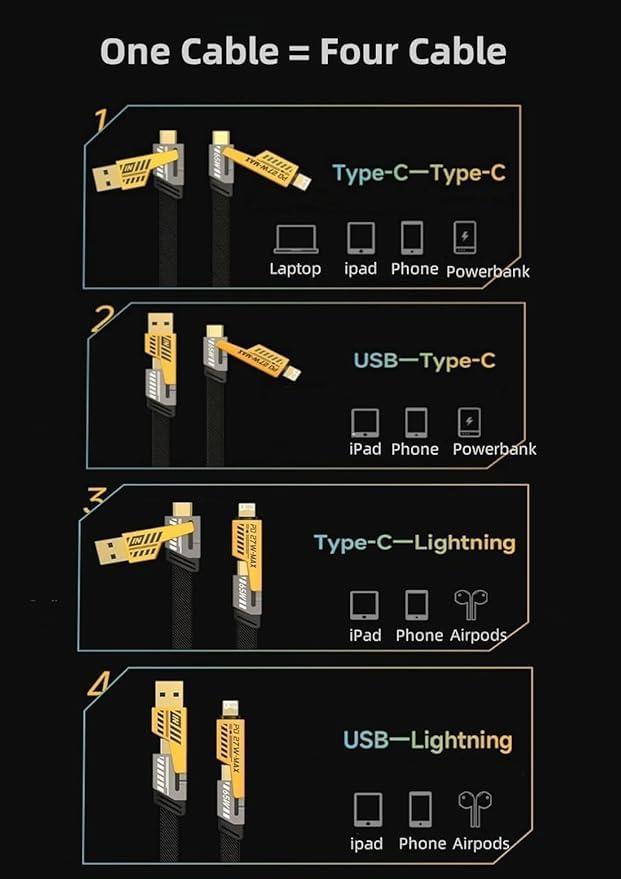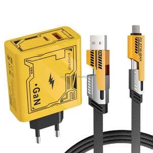 - محول طاقة للشحن السريع 120 واط مع كابل شحن تيربو 2 في 1 بلون أصفر.
